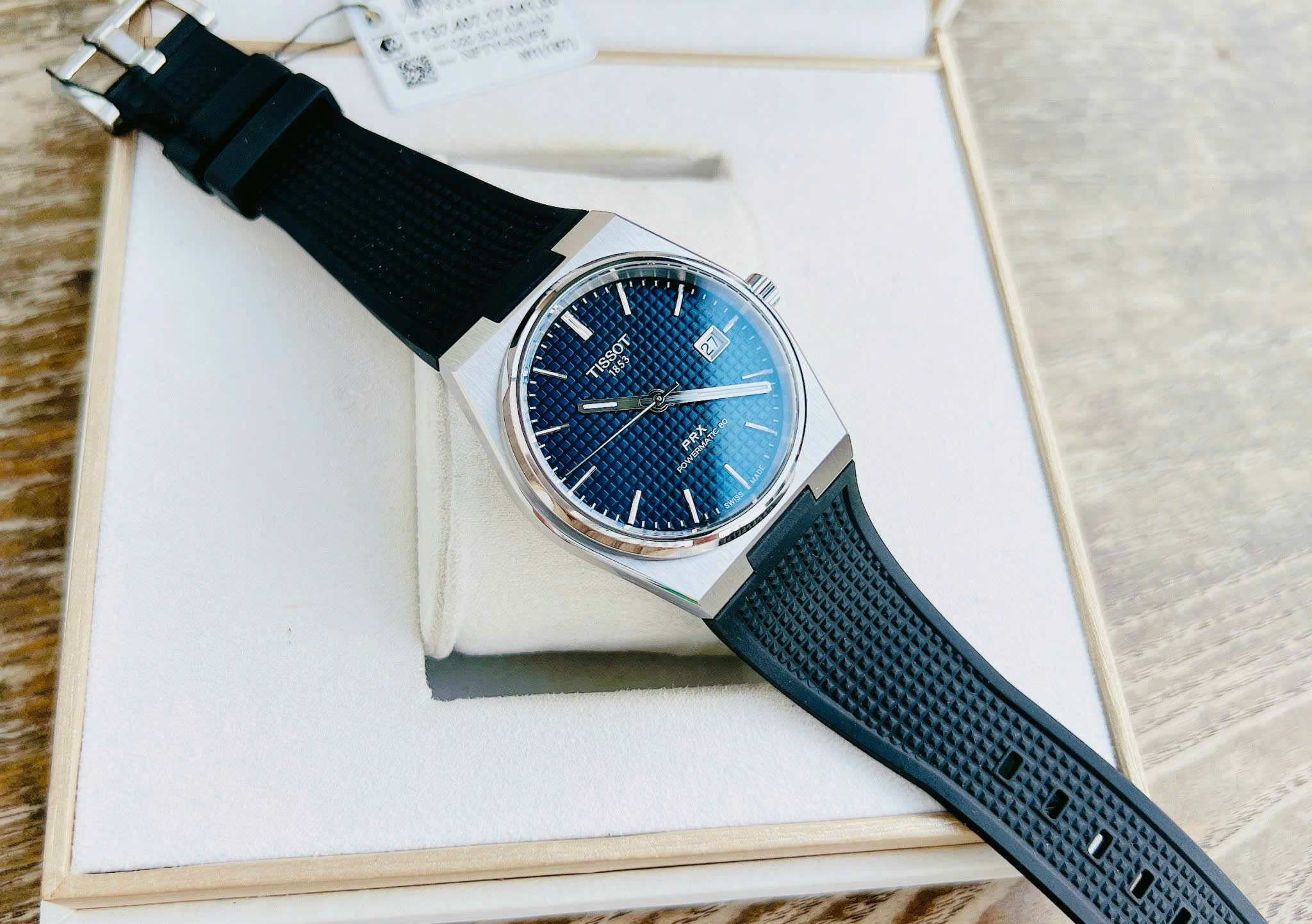 🔥 Dòng sản phẩm đình đám của Tissot với thiết kế độc đáo ấn tượng từ cuối những năm 1970, thiết kế mà ngay cả các hãng đồng hồ xa xỉ như Audemars Piguet vẫn còn sử dụng tới tận bây giờ. Mặt dial tuyệt đẹp với vân tapisserie blue trẻ trung